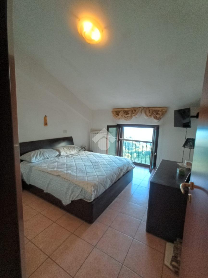 Bellegra: In contesto residenziale, di recente costruzione, si propone in vendita appartamento con entrata indipendente disposto su due livelli così composto: P. primo cucina abitabile, soggiorno con termo stufa a pellet , bagno e balcone; Secondo piano due camere da letto e bagno con doccia. Termo autonomo, ristrutturato, abitabile da subito. Completa la proprietà un posto auto. Fronte fermata bus Panoramico