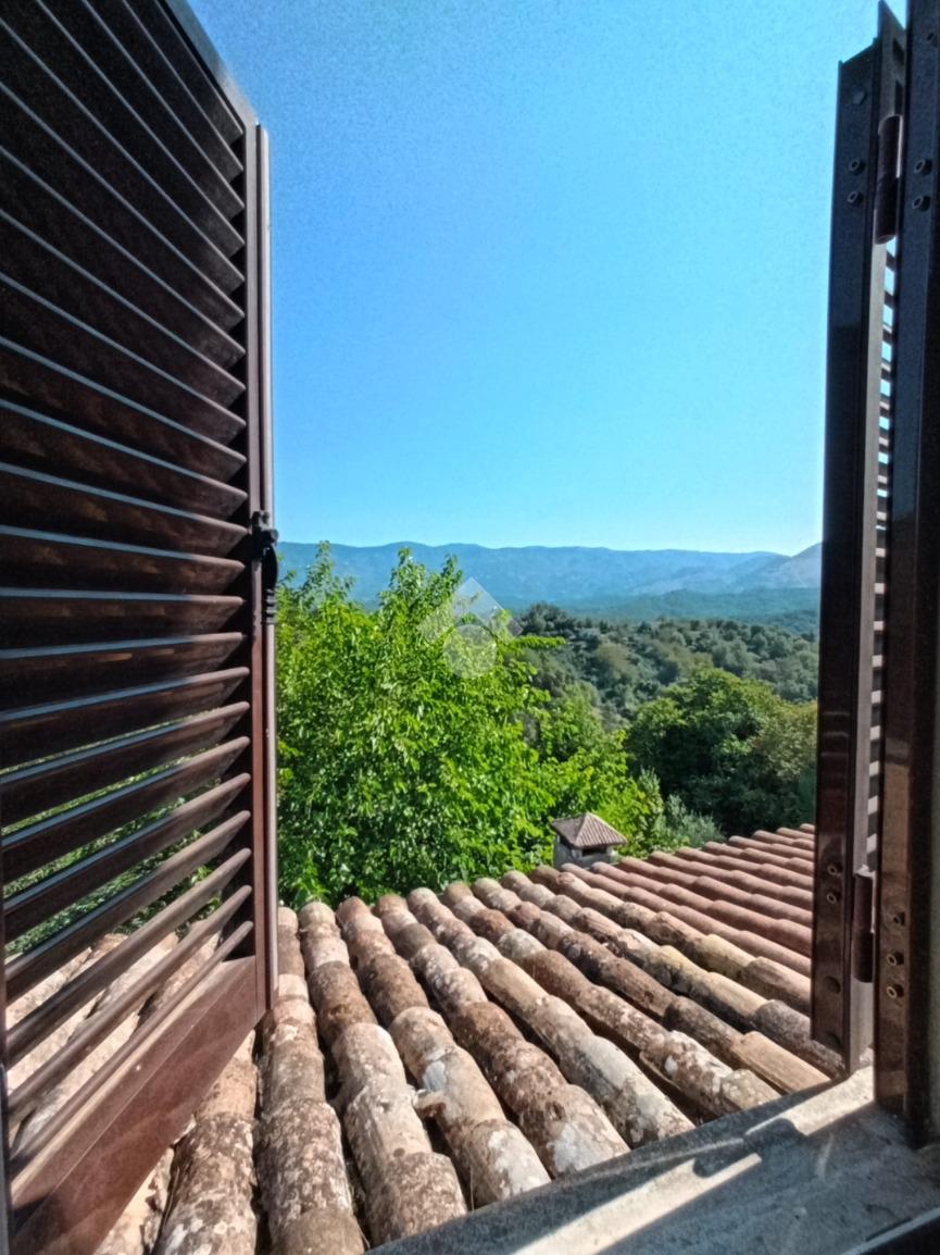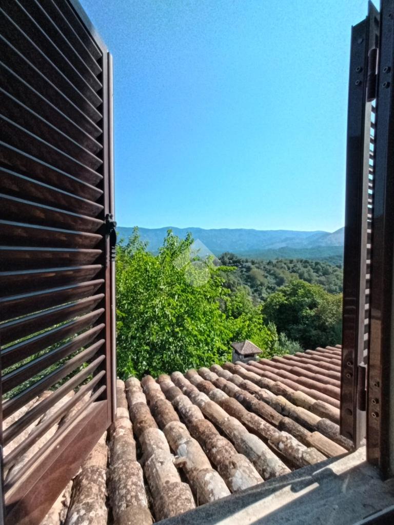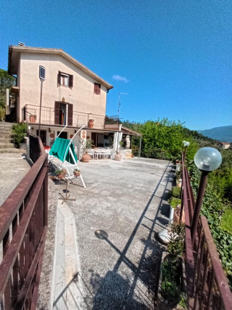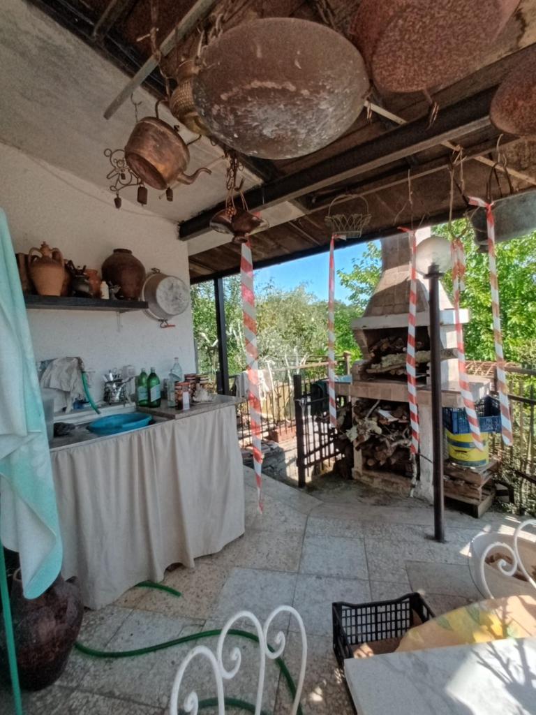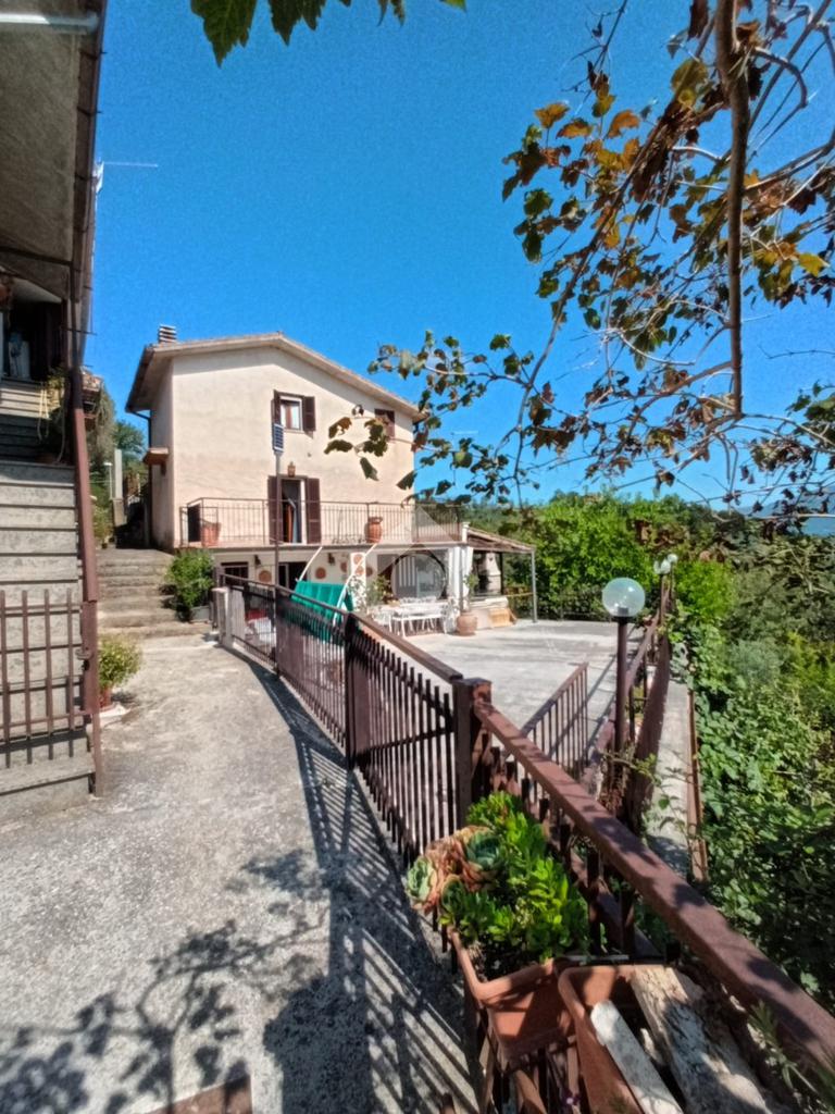 Bellegra: A circa 5 km dal centro urbano, in contesto verdeggiante ma abitato, si propone in vendita fabbricato Bifamiliare, ma cielo terra indipendente, composto da: P. terra cucinotto con saloncino termo camino e forno, portico attrezzato con forno a legna esterno e lavabo e esterno. al Piano primo accessibile da una scala interna a chiocciola camera da letto con terrazzo e comodo bagno con vasca. Al piano secondo accessibile tramite scala esterna al fabbricato con entrata indipendente si trova un ulteriore cameretta, una camera da letto matrimoniale e un bagno . L'immobile in ottime condizioni abitative servito di acqua diretta e luce, gode di una vista panoramica e ben assolato. Completa la proprietà un bellissimo terrazzo , cantina al piano seminterrato, e locale legnaia distaccato al fabbricato. due posti auto riservati nell'area di accesso condominiale e un terreno collinare di circa 8.000mq