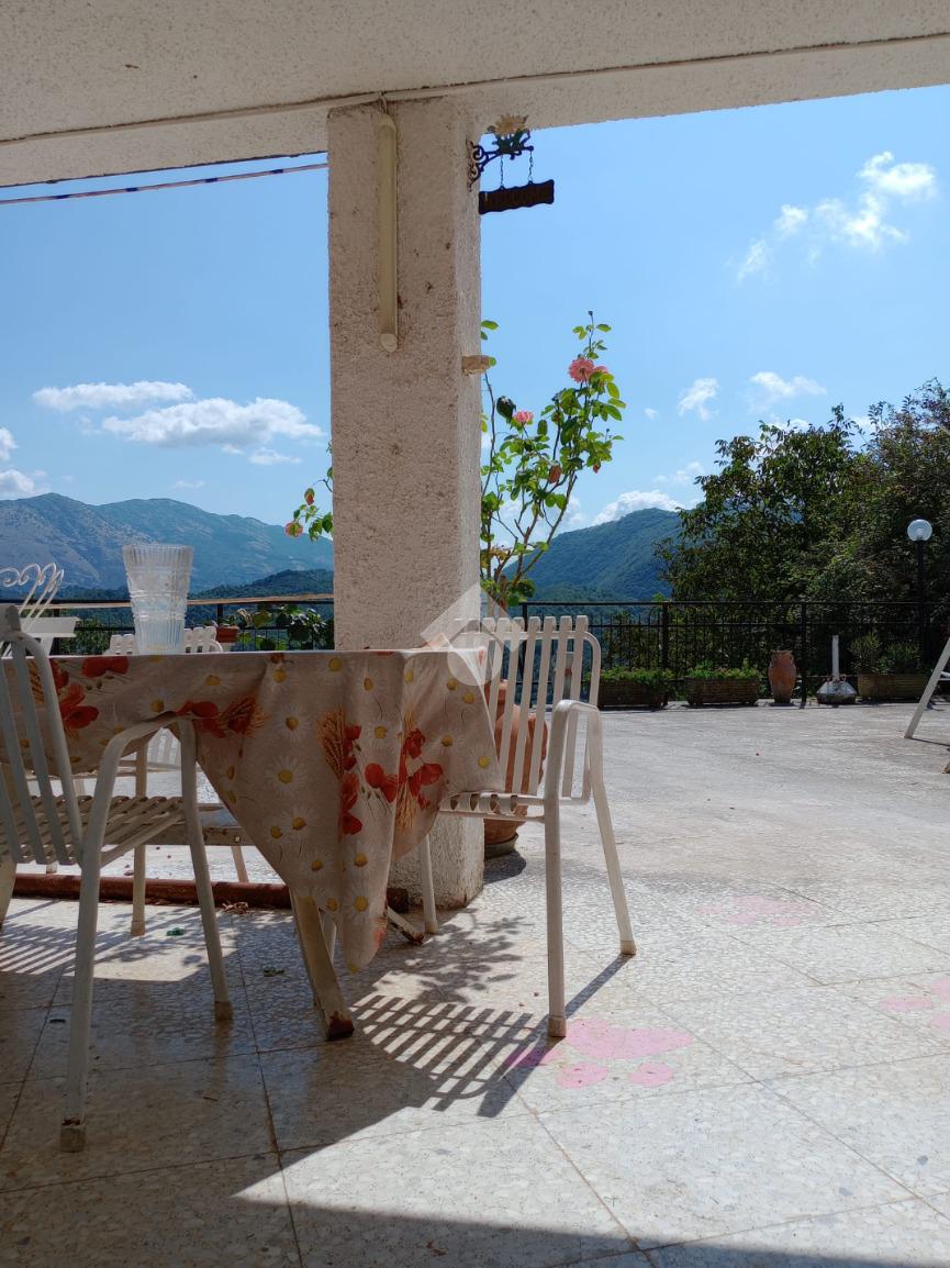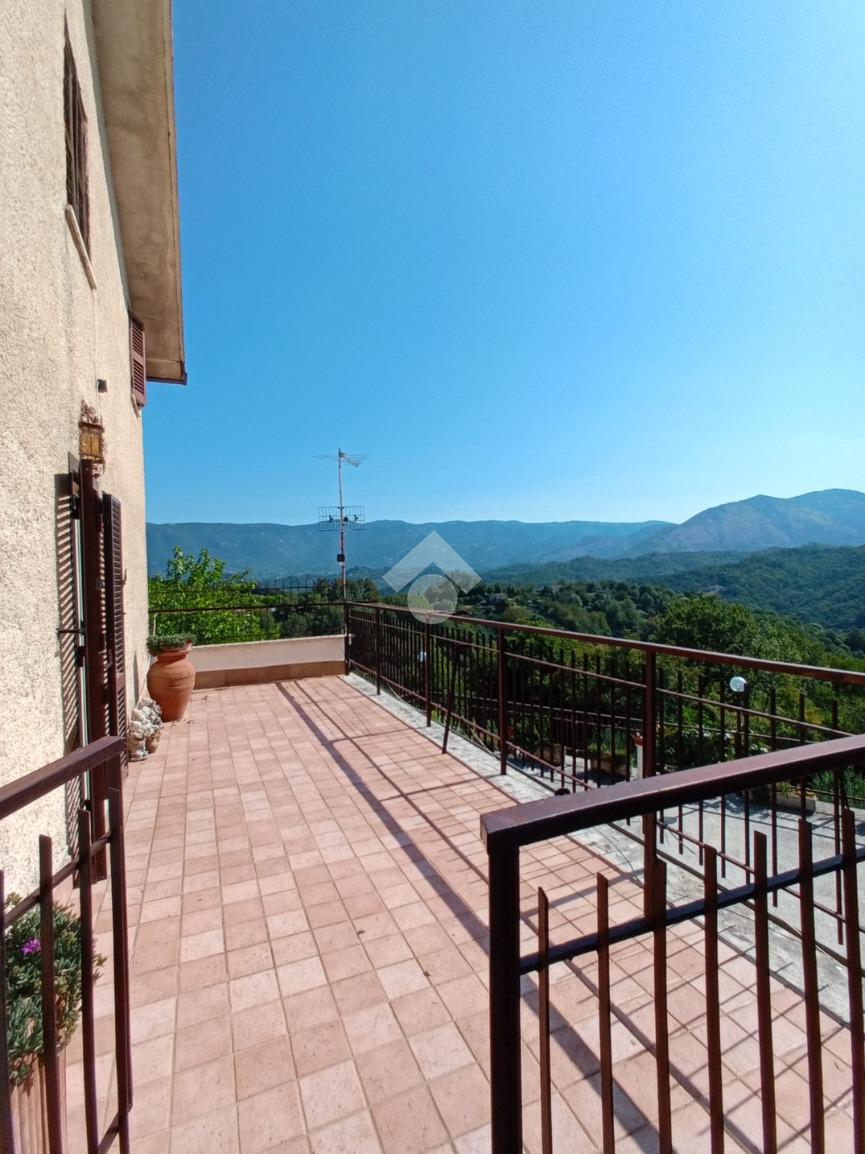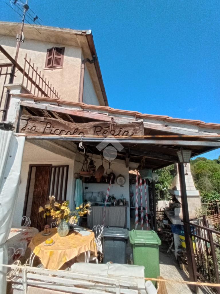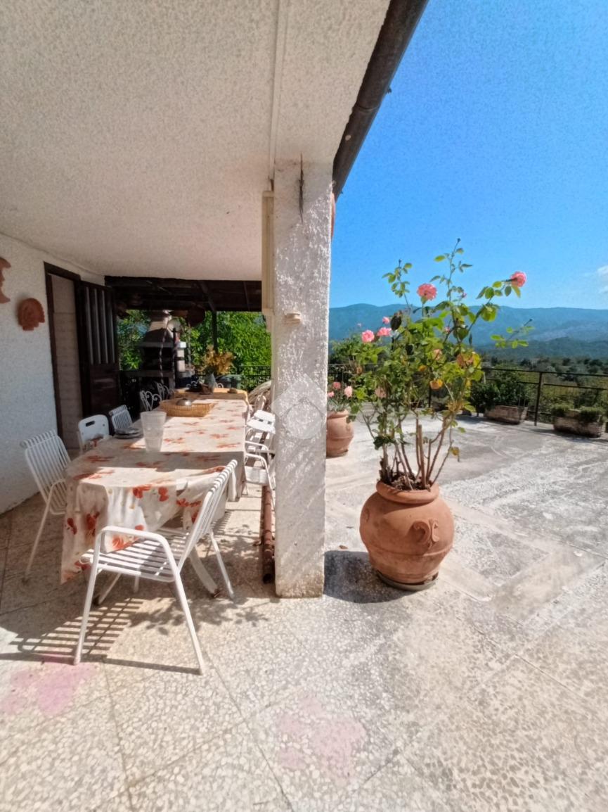 Bellegra: A circa 5 km dal centro urbano, in contesto verdeggiante ma abitato, si propone in vendita fabbricato Bifamiliare, ma cielo terra indipendente, composto da: P. terra cucinotto con saloncino termo camino e forno, portico attrezzato con forno a legna esterno e lavabo e esterno. al Piano primo accessibile da una scala interna a chiocciola camera da letto con terrazzo e comodo bagno con vasca. Al piano secondo accessibile tramite scala esterna al fabbricato con entrata indipendente si trova un ulteriore cameretta, una camera da letto matrimoniale e un bagno . L'immobile in ottime condizioni abitative servito di acqua diretta e luce, gode di una vista panoramica e ben assolato. Completa la proprietà un bellissimo terrazzo , cantina al piano seminterrato, e locale legnaia distaccato al fabbricato. due posti auto riservati nell'area di accesso condominiale e un terreno collinare di circa 8.000mq