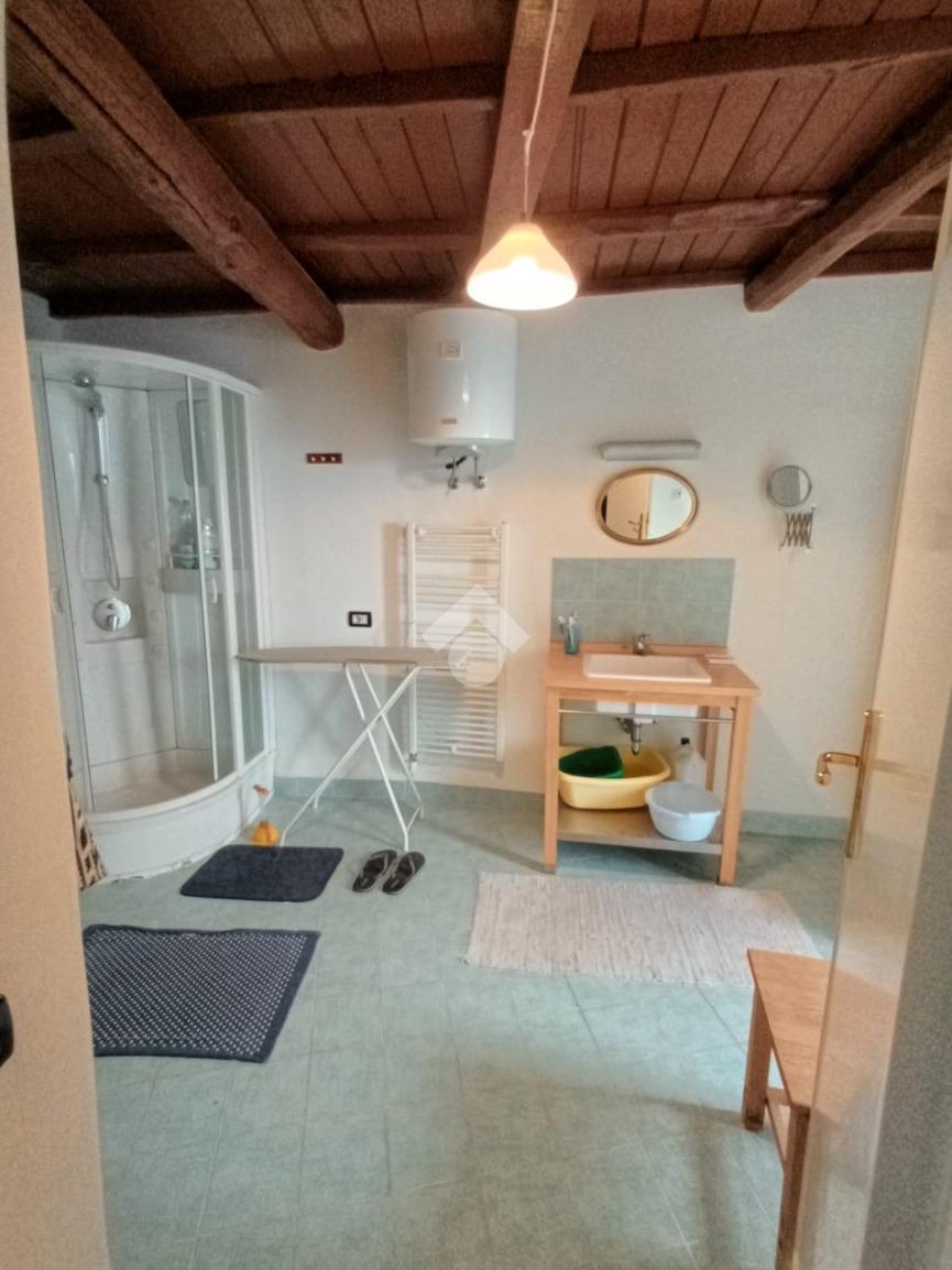 OLevano R: All'inizio del centro storico si propone in vendita appartamento di ampia metratura cielo terra indipendente disposto su tre livelli composto da: ingresso, cucina con stufa a legna, wc, camera e cabina armadio, al piano secondo ci accoglie un soggiorno con pavimento in cotto originale, ampio bagno con doccia idromassaggio, piano terzo due camere da letto e terrazzino, dal quale godere di un affaccio panoramicissimo. L'immobile in buonissimo stato è da subito abitabile. Caratterizzato da infissi nuovi, travi a vista in legno . Completa la proprietà un comodo locale cantina adiacente l'abitazione di ulteriori 30 mq