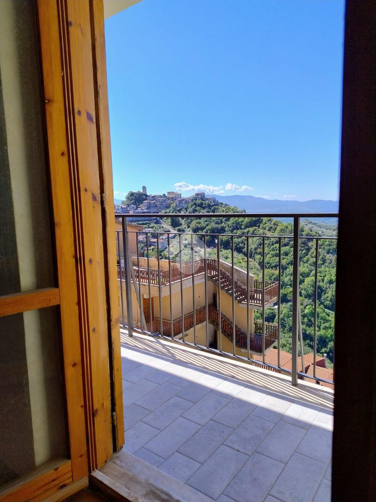 Olevano Romano: Appartamento situato al terzo piano con splendido affaccio panoramico che garantisce luminosità e vista aperta. L'immobile si trova in uno stabile recentemente ristrutturato nelle parti comuni esterne, con facciata e tetto completamente rifatti. E' composto da ingresso, cucina abitabile, sala, due ampie camere, doppi servizi, balcone. Completa la proprietà un garage comune con posto auto. Dotato di riscaldamento autonomo.