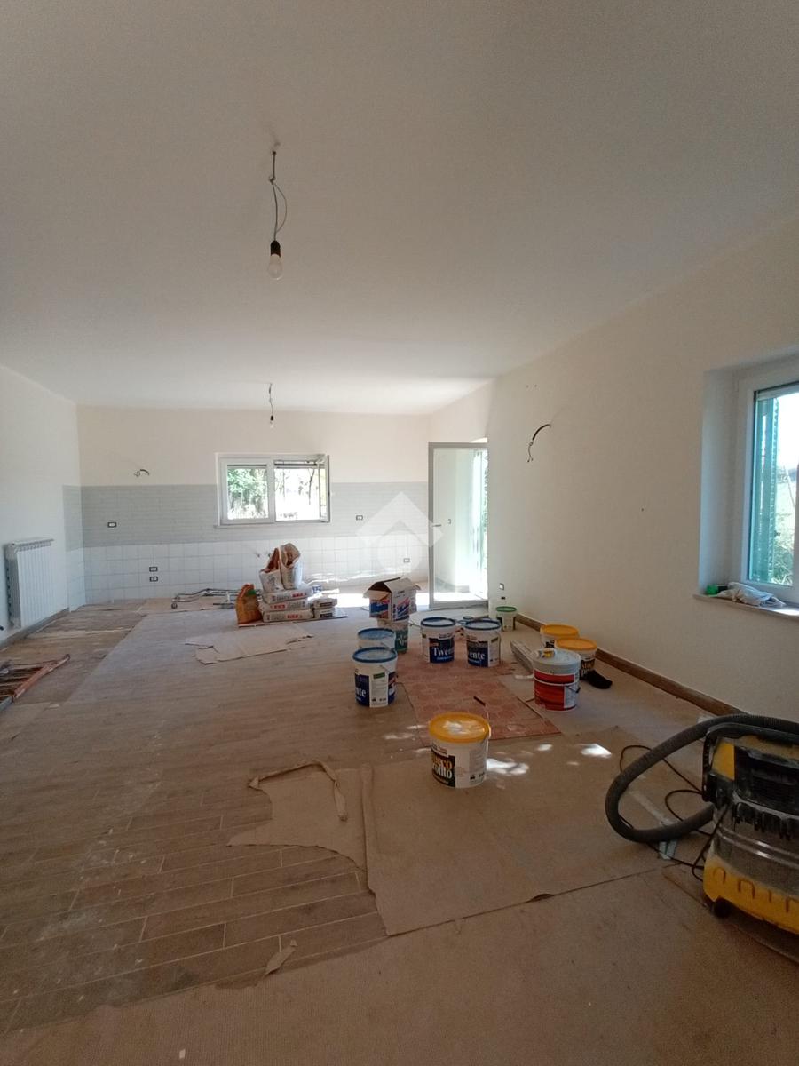 Ingresso , Ampio salone con predisposizione canna fumaria, e Angolo cottura, facilmente divisibile anche in due ambienti separati, bagno di servizio